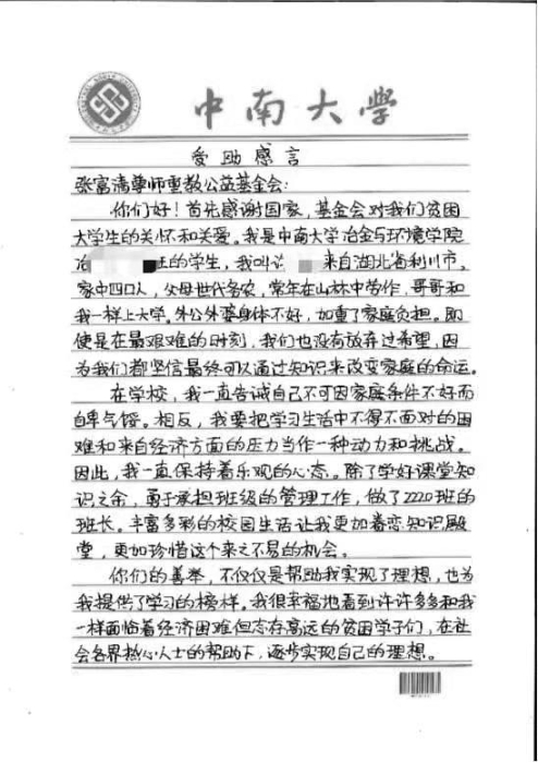 湖北建行張富清尊師重教公益基金成立后,救助對象面向生活困難的學(xué)生和遭遇困境的教師。張健全認(rèn)為,把公益善款用在最需要的人身上,就好像好鋼用在刀刃上,從項(xiàng)目去年開展的情況來看,效果非常好。