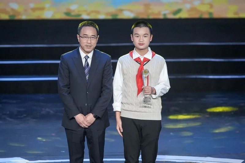 中共湖北省委宣傳部副部長黃學(xué)龍為全國“新時代好少年”獲獎?wù)唿S煒宸頒獎
