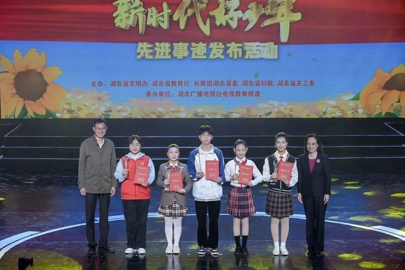 湖北省關(guān)工委副主任王樹華、全國道德模范楊小玲為湖北省“新時代好少年”頒獎