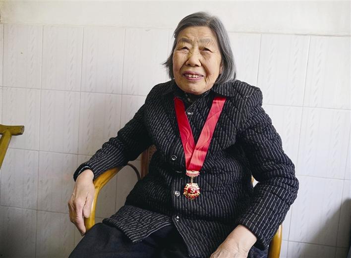鄢明珍佩戴“光榮在黨50年”紀念章。 (資料圖片:三峽日報通訊員 鄒前俊 攝)