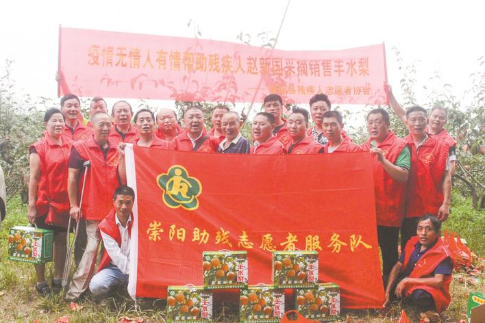 助殘志愿者服務(wù)隊幫農(nóng)民銷售水果