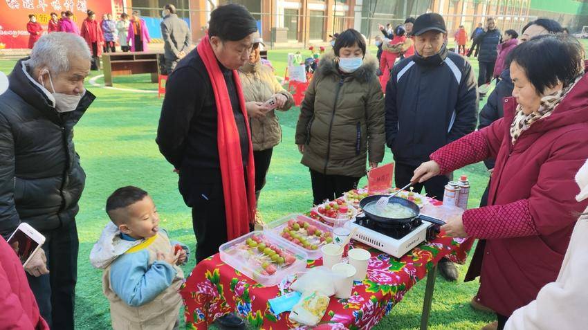 “嘭”的一聲巨響,一顆顆糯米在炸米泡的師傅的布袋里變成了“大胖小子”?!罢秩思倚≡骸焙汀罢秩思倚≠u鋪”攤位前也人頭攢動,翻餃、蝦片、春卷在油鍋里翻滾跳躍,趁著熱勁吃上口齒留香。社區(qū)工作者做了晶瑩剔透的冰糖葫蘆,饞得小孩直流口水。正街的嬢嬢在賣豆絲,熱情地招呼居民過去。童年游戲攤位圍滿了前來體驗的居民,跳皮筋、踢毽子,個個都是行家。
