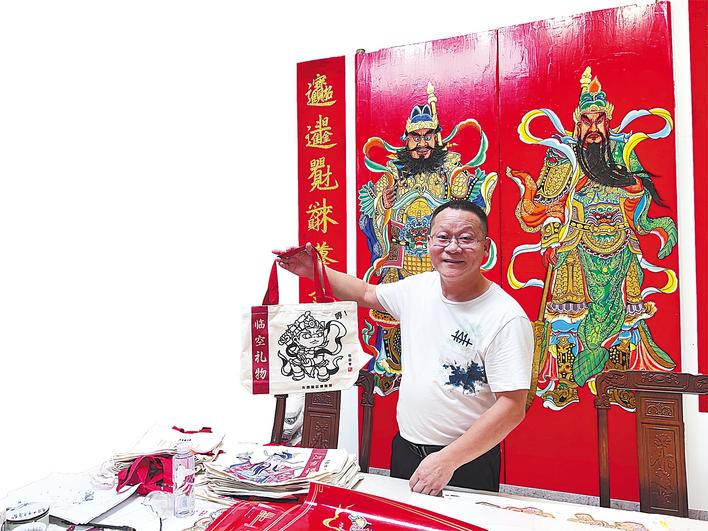 “年輕人不是不喜歡傳統(tǒng),而是需要符合當(dāng)代審美和傳播方式的文化產(chǎn)品?!痹S華波強(qiáng)調(diào)。如今漢吉福團(tuán)隊(duì)平均年齡不到30歲,他們以創(chuàng)新思維打破年畫僅在春節(jié)銷售的局限,開發(fā)出合體貼字、門神帆布包、發(fā)財(cái)文創(chuàng)扇等衍生產(chǎn)品,并針對(duì)城市住宅單門結(jié)構(gòu)推出專用年畫,進(jìn)一步拓寬使用場(chǎng)景與消費(fèi)人群。目前,他們通過(guò)抖音運(yùn)營(yíng)十余個(gè)賬號(hào),日均發(fā)貨超千單,產(chǎn)品銷往山東、廣東、河南等地,甚至通過(guò)外貿(mào)公司間接出口至海外市場(chǎng),成為華人家庭春節(jié)時(shí)的“鄉(xiāng)愁寄托”。