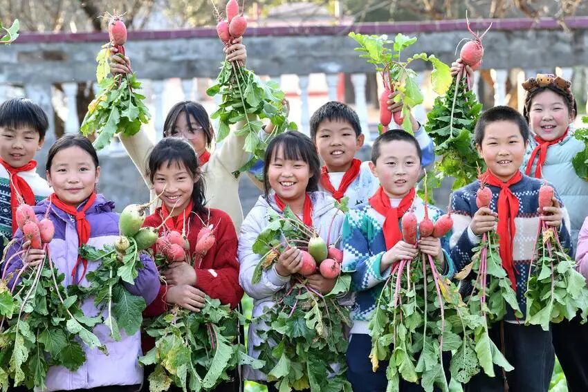 “之前在校園農場種的蘿卜終于熟了!今天跟著老師來采收,拔出來的蘿卜比我的拳頭還大呢!”梅花小學學生任蕓菲舉著蘿卜滿眼歡喜,“之前播種、澆水的辛苦都有了回報,這種收獲的感覺特別開心!”